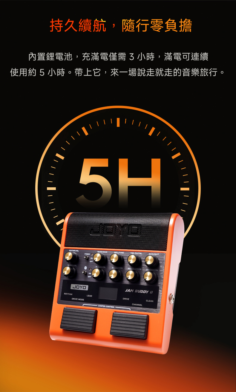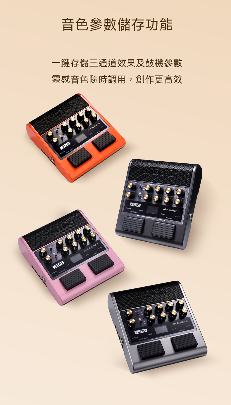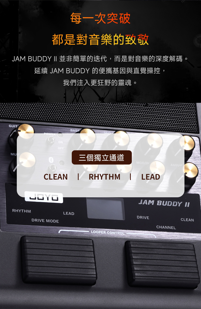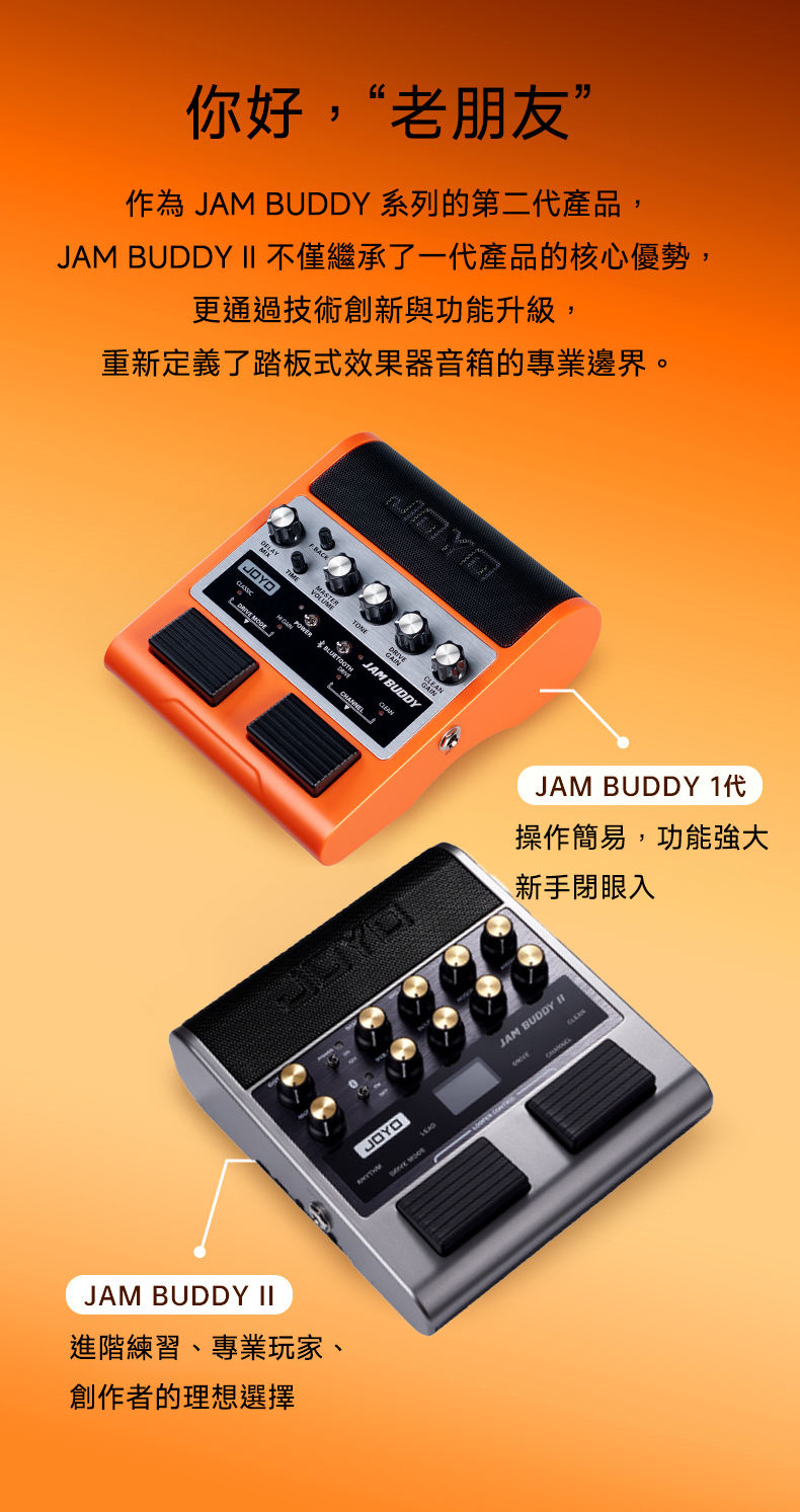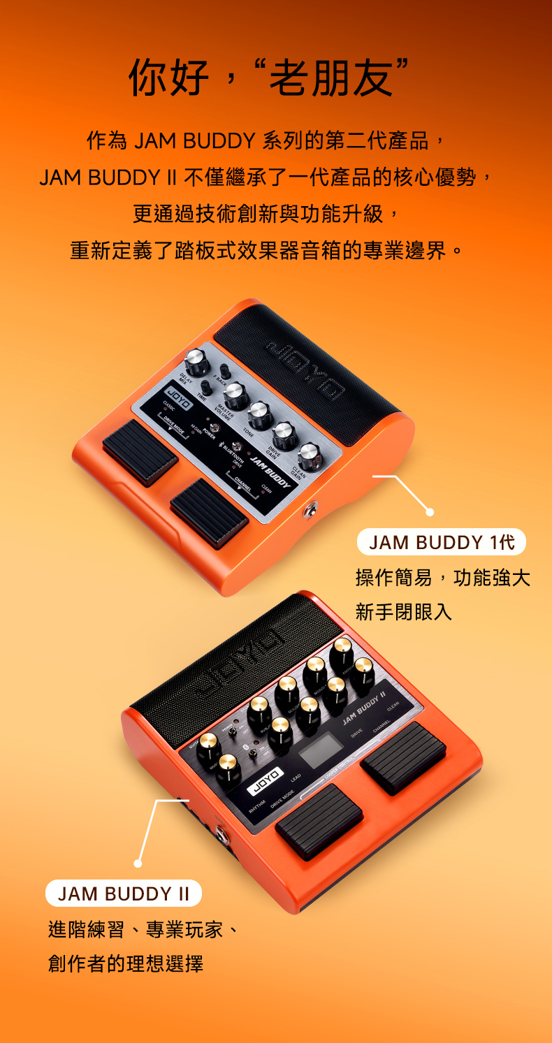 JAM BUDDY II 是 JOYO 全新推出的進階型踏板式多功能音箱,承襲第一代的便攜基因,